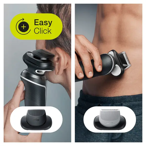 EasyClick add-ons, such as the Precision Trimmer, allow you to experiment with sideburns and different moustache styles.